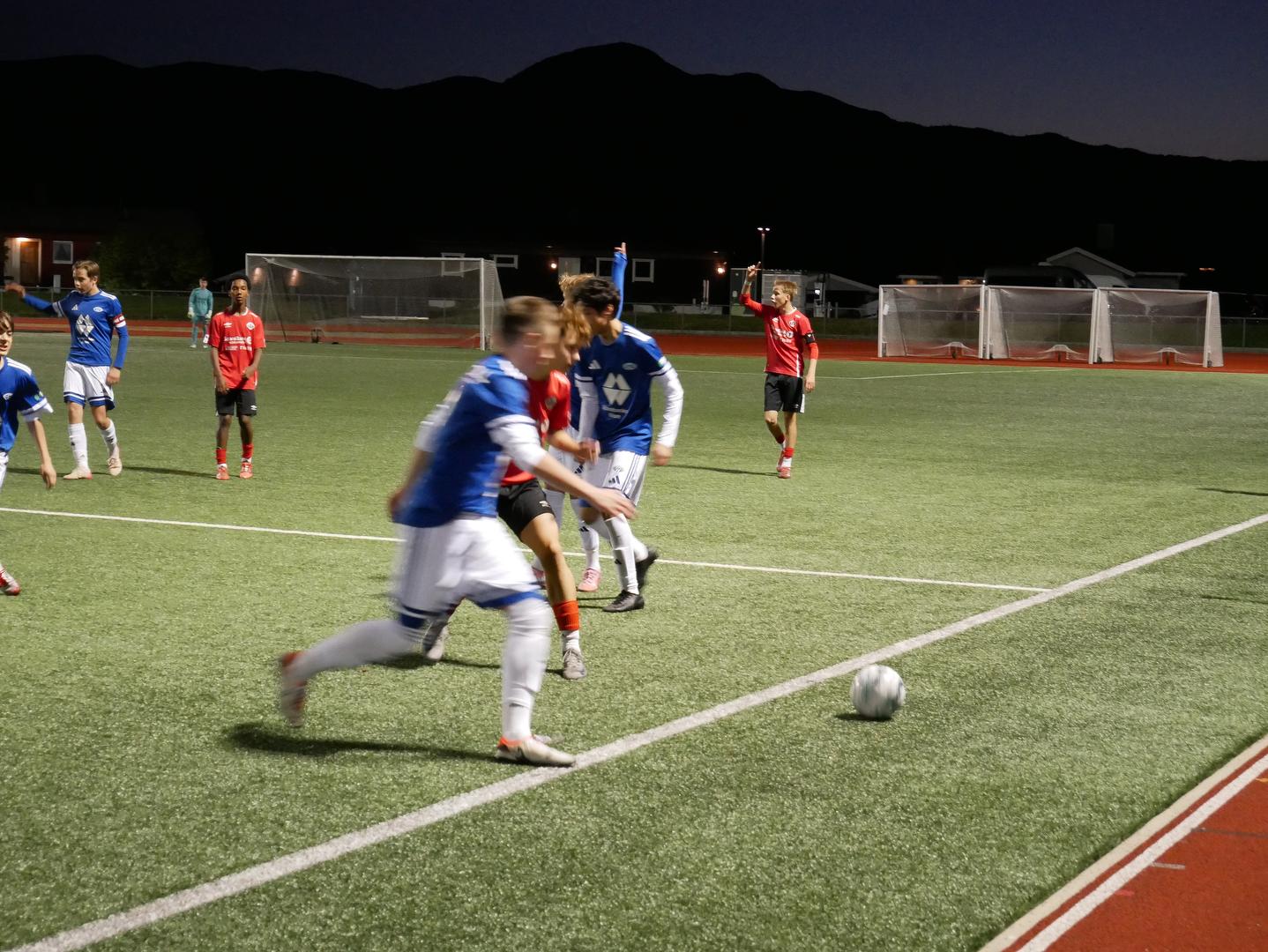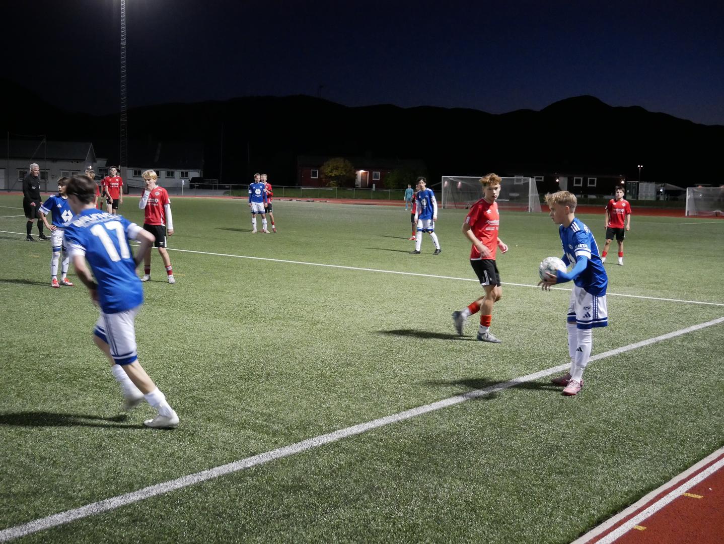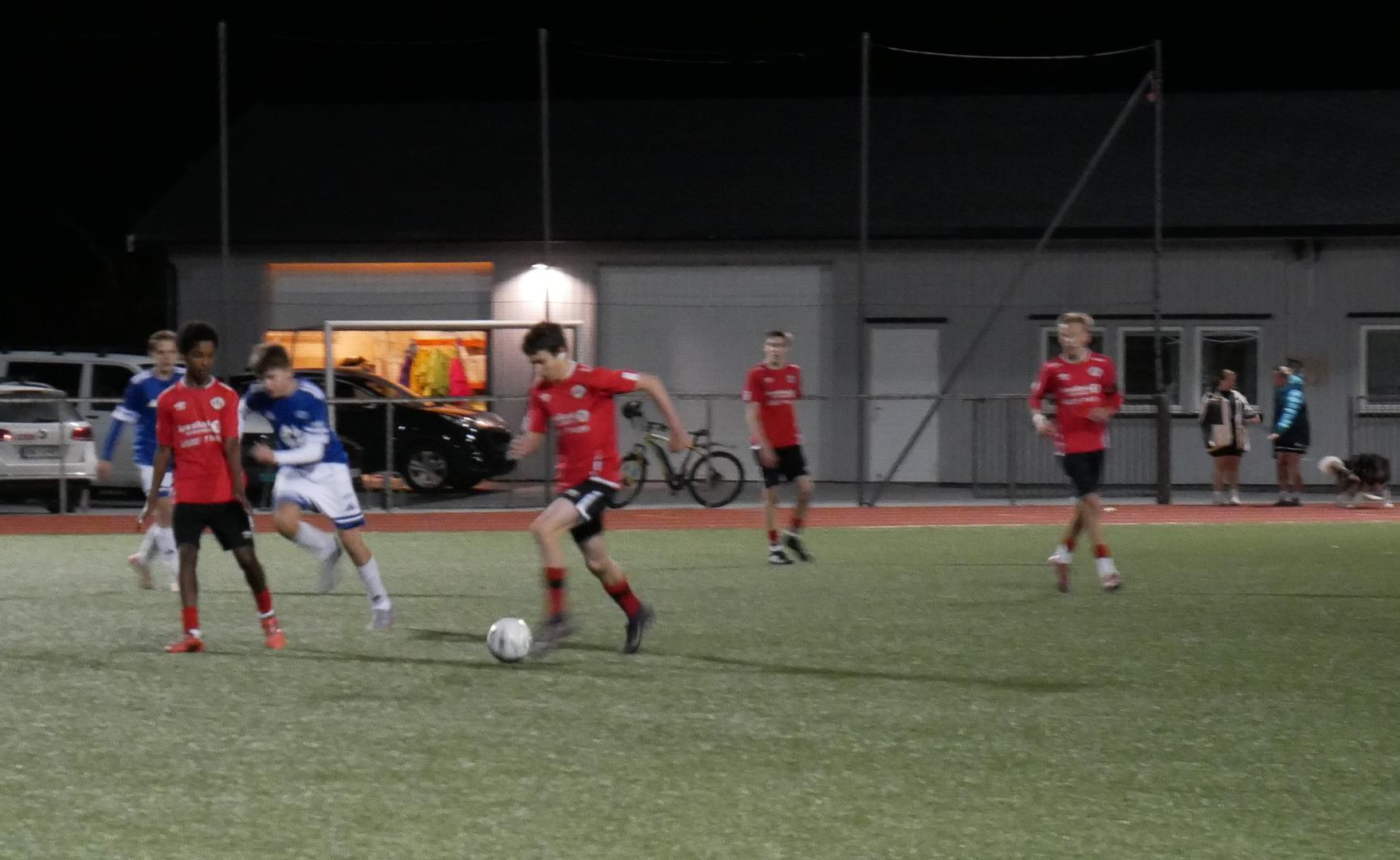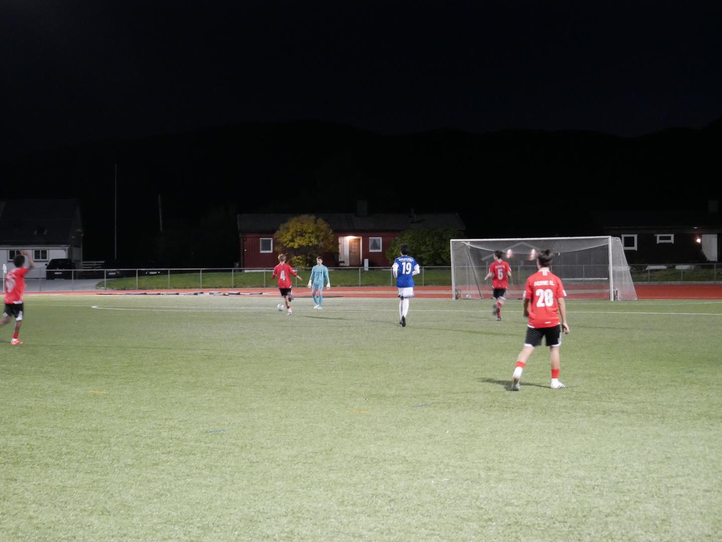 Våre gutter tar kommandoen fra start, og skaper flere halvsjanser før Sondre utnytter at Moldeforsvaret står høyt, løper alene gjennom mot keeper og setter den utagbart opp i venstre vinkel. Kampuret viser 13 minutter, men allerede minuttet etter er moldenserne à jour. 1-1 står seg til pause, i en omgang som er relativt jevnspilt og sjansefattig.