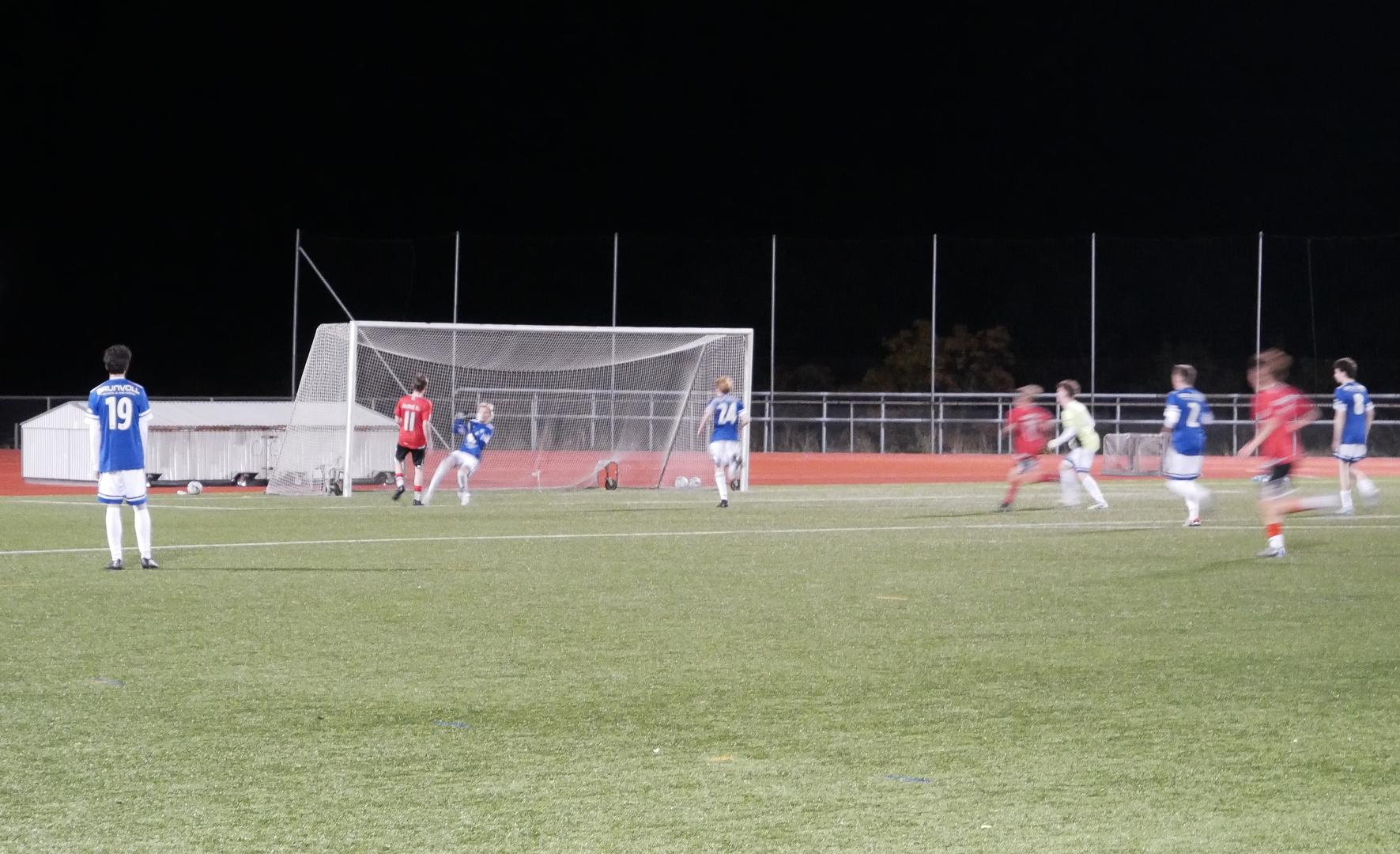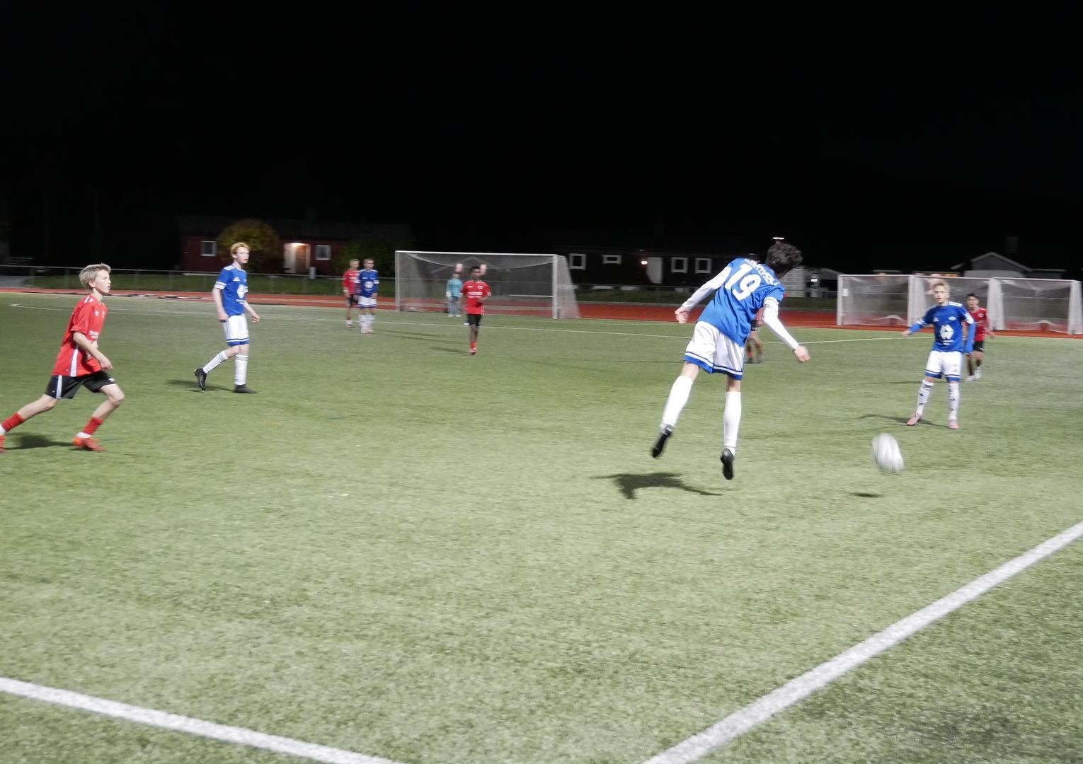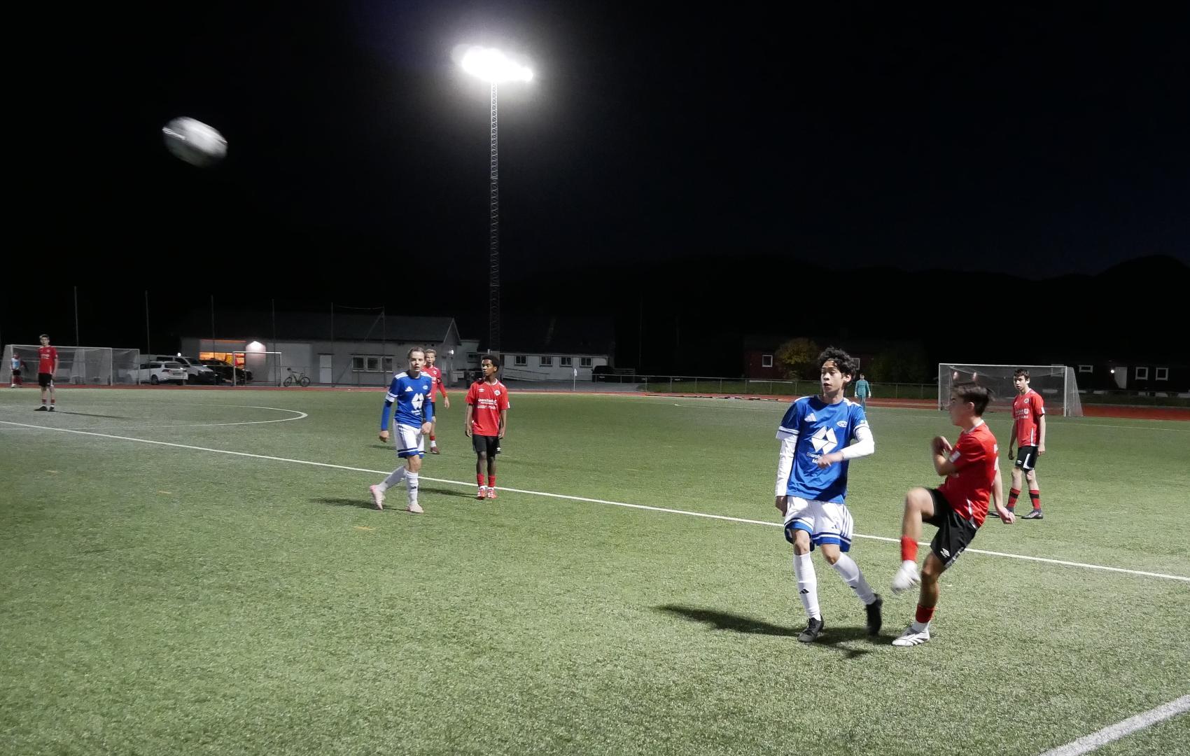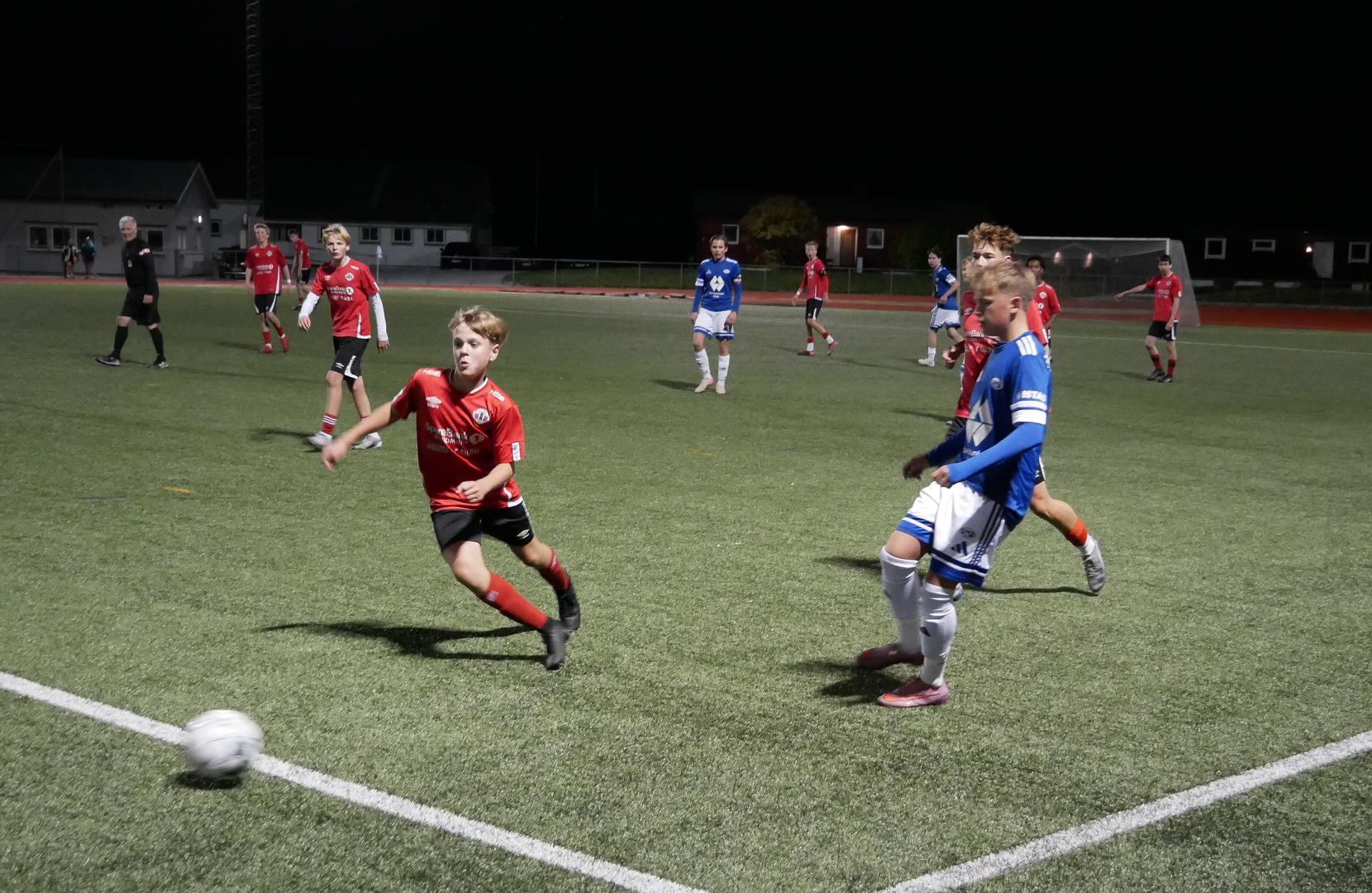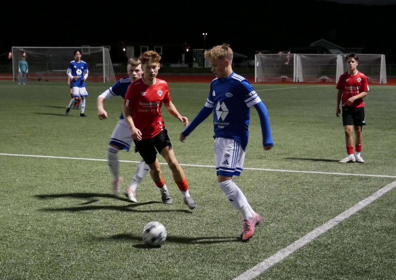 Våre gutter tar kommandoen fra start, og skaper flere halvsjanser før Sondre utnytter at Moldeforsvaret står høyt, løper alene gjennom mot keeper og setter den utagbart opp i venstre vinkel. Kampuret viser 13 minutter, men allerede minuttet etter er moldenserne à jour. 1-1 står seg til pause, i en omgang som er relativt jevnspilt og sjansefattig.