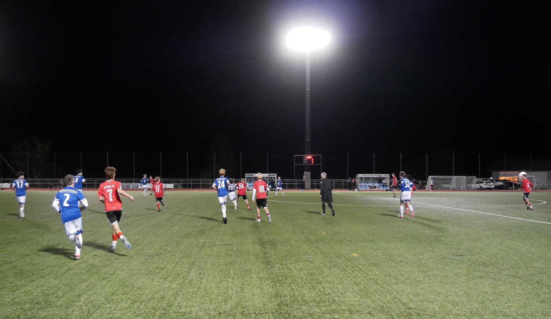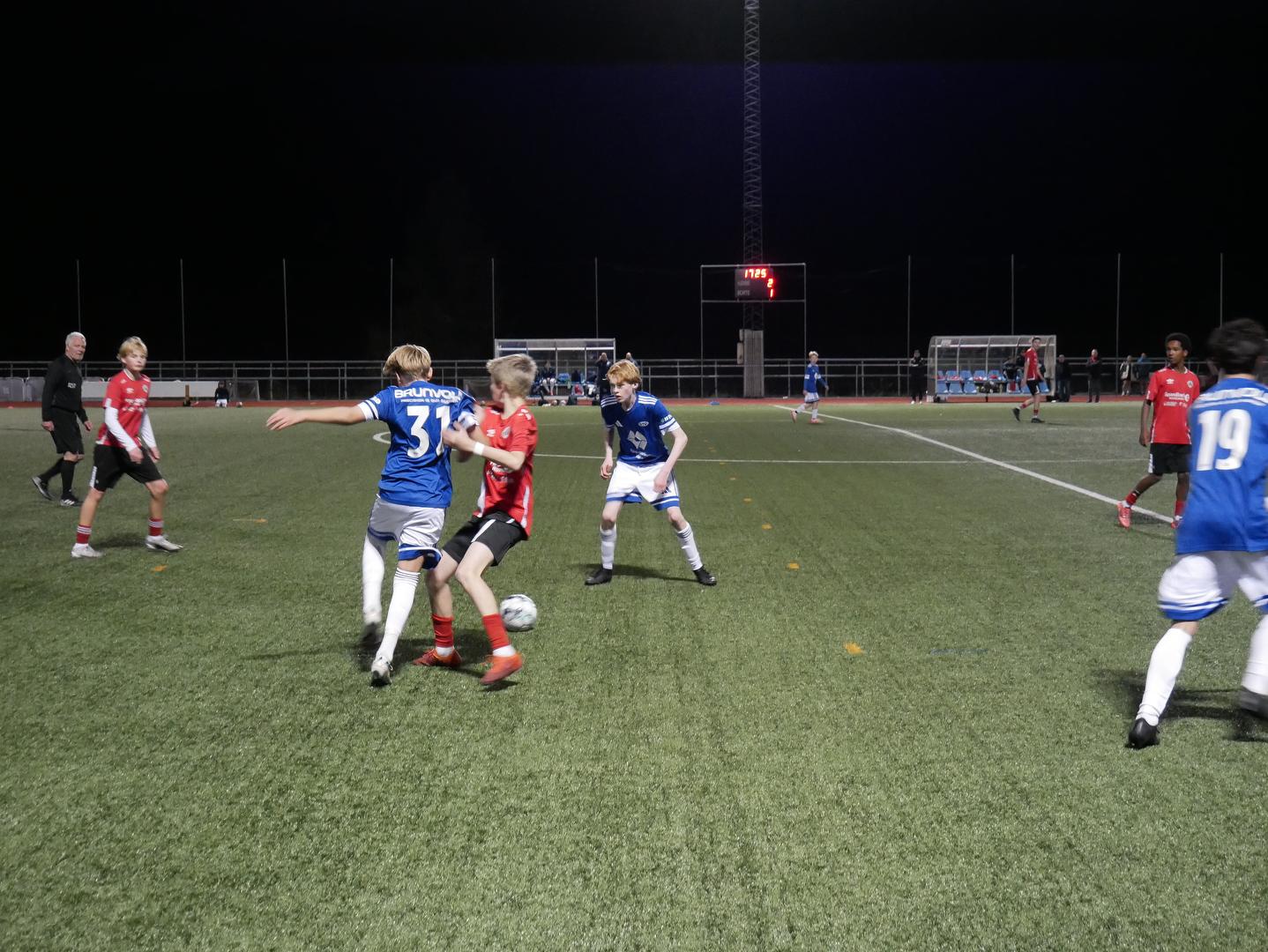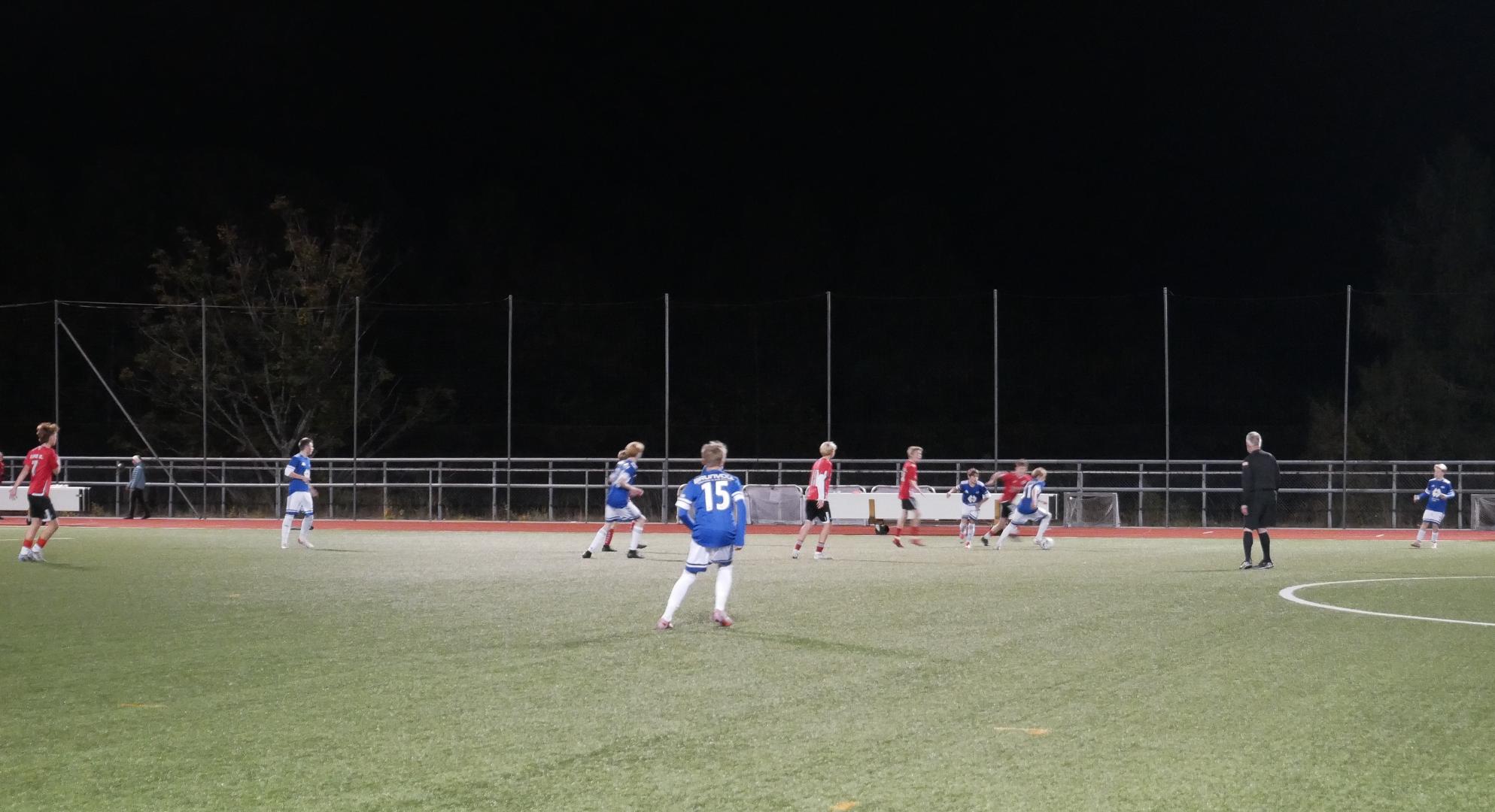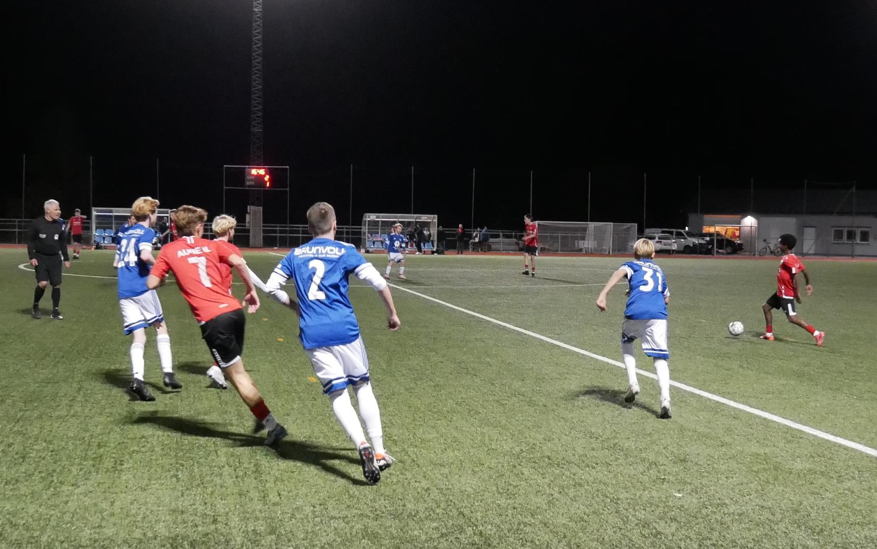 Våre gutter tar kommandoen fra start, og skaper flere halvsjanser før Sondre utnytter at Moldeforsvaret står høyt, løper alene gjennom mot keeper og setter den utagbart opp i venstre vinkel. Kampuret viser 13 minutter, men allerede minuttet etter er moldenserne à jour. 1-1 står seg til pause, i en omgang som er relativt jevnspilt og sjansefattig.