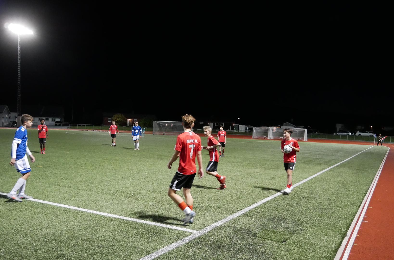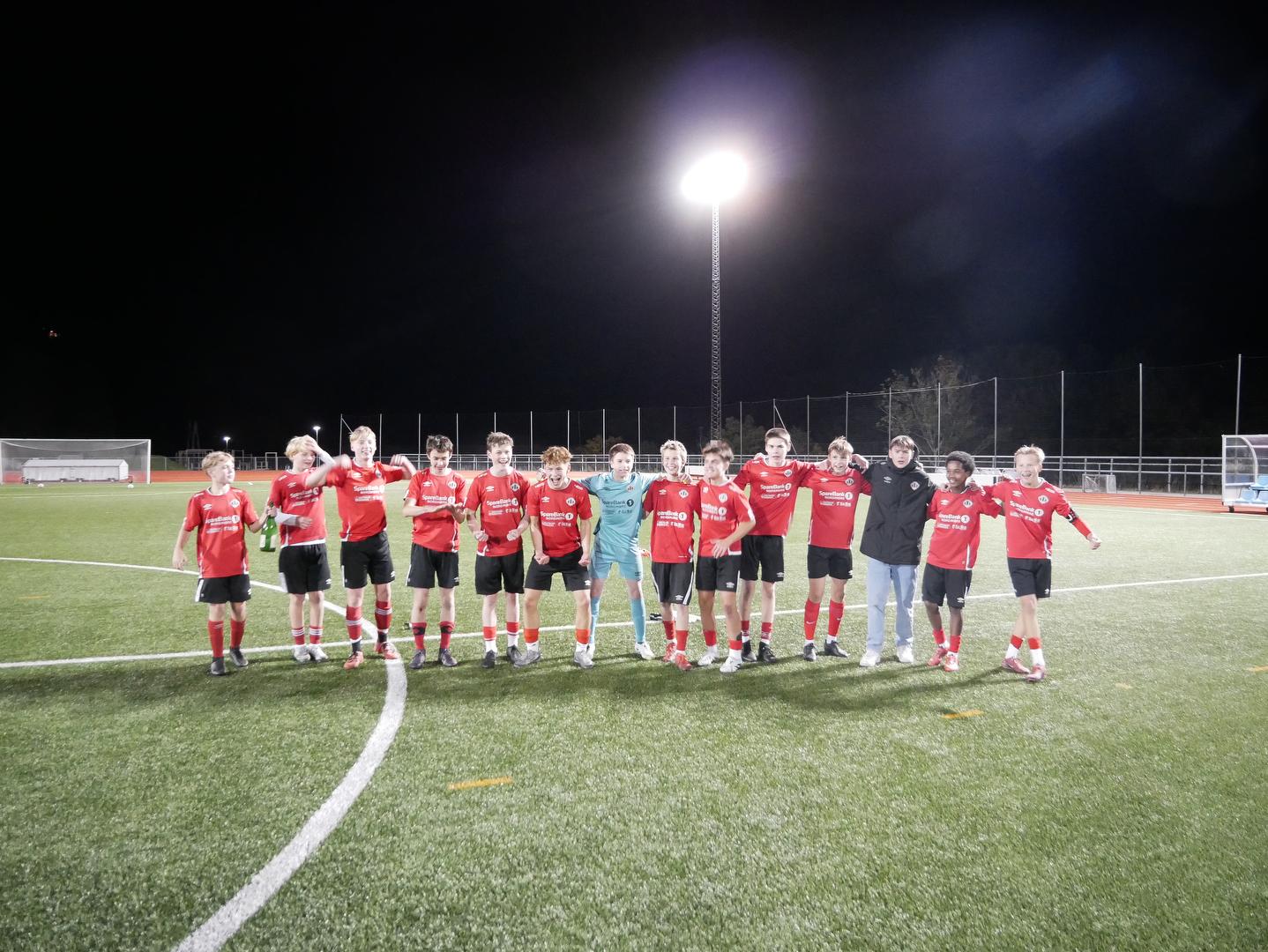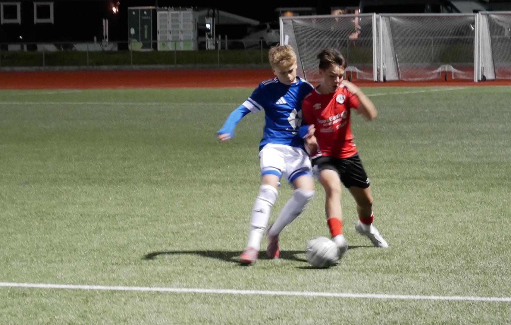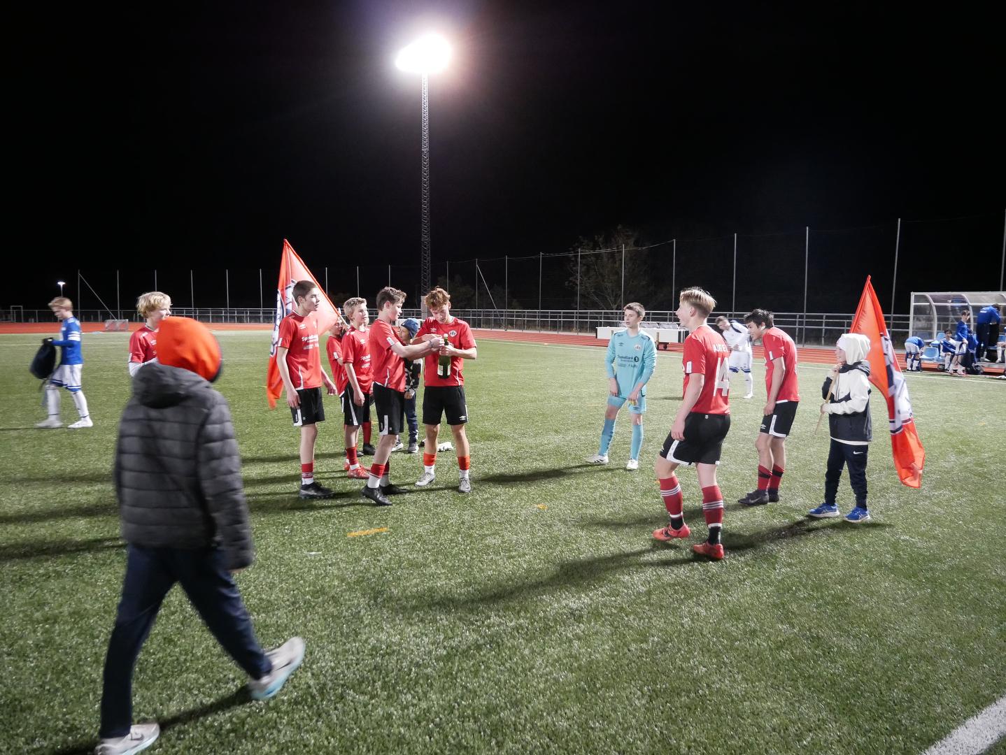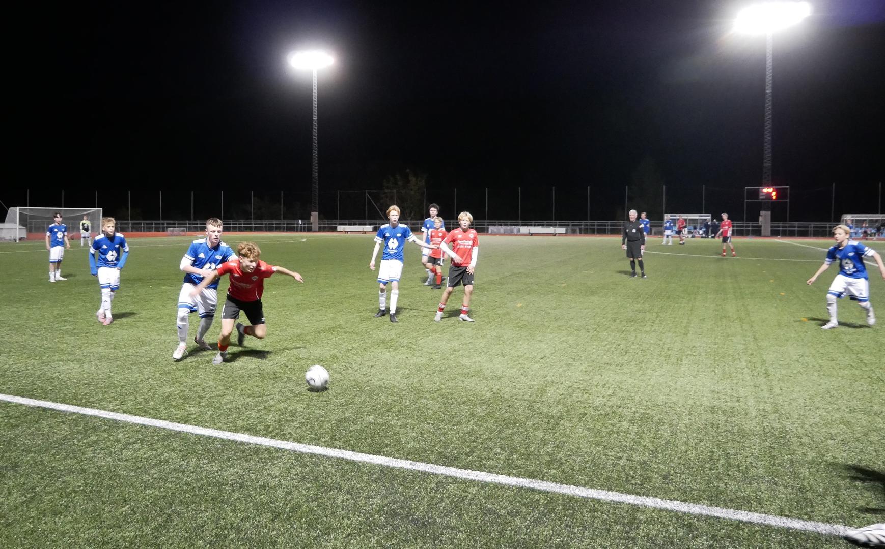 Våre gutter tar kommandoen fra start, og skaper flere halvsjanser før Sondre utnytter at Moldeforsvaret står høyt, løper alene gjennom mot keeper og setter den utagbart opp i venstre vinkel. Kampuret viser 13 minutter, men allerede minuttet etter er moldenserne à jour. 1-1 står seg til pause, i en omgang som er relativt jevnspilt og sjansefattig.