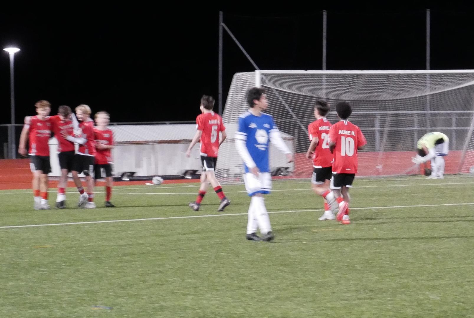 Pausepraten fra trenerne Karl Mikael og Vegard gjør godt for hjemmelaget -og andre omgang starter med flere nestensjanser til Aure. Etter 47 minutter sitter endelig 2-1 målet og det er Fredrik som spilles fri på høyresiden, runder keeper og setter den kontrollert i mål. Etter dette lukter det flere Auremål og go'fot-fotball i hvert angrep, men kampuret viser hele 60 minutter før Isak spiller Fredrik fint gjennom på høyresiden. Fredrik runder likegodt keeperen for andre gang denne onsdagskvelden og setter 3-1. De siste ti minuttene spiller Aureguttene med god kontroll og slipper knapt bortelaget til noen målsjanser. Dommeren blåser av kampen etter 70 minutter, og den påfølgende jubelen er en serievinner verdig.