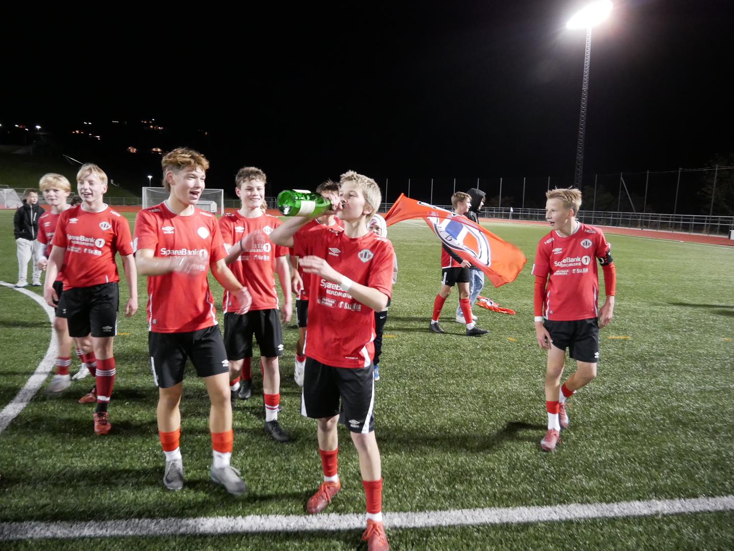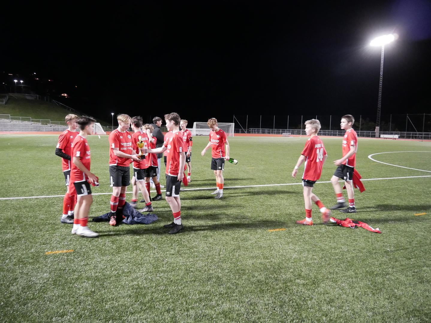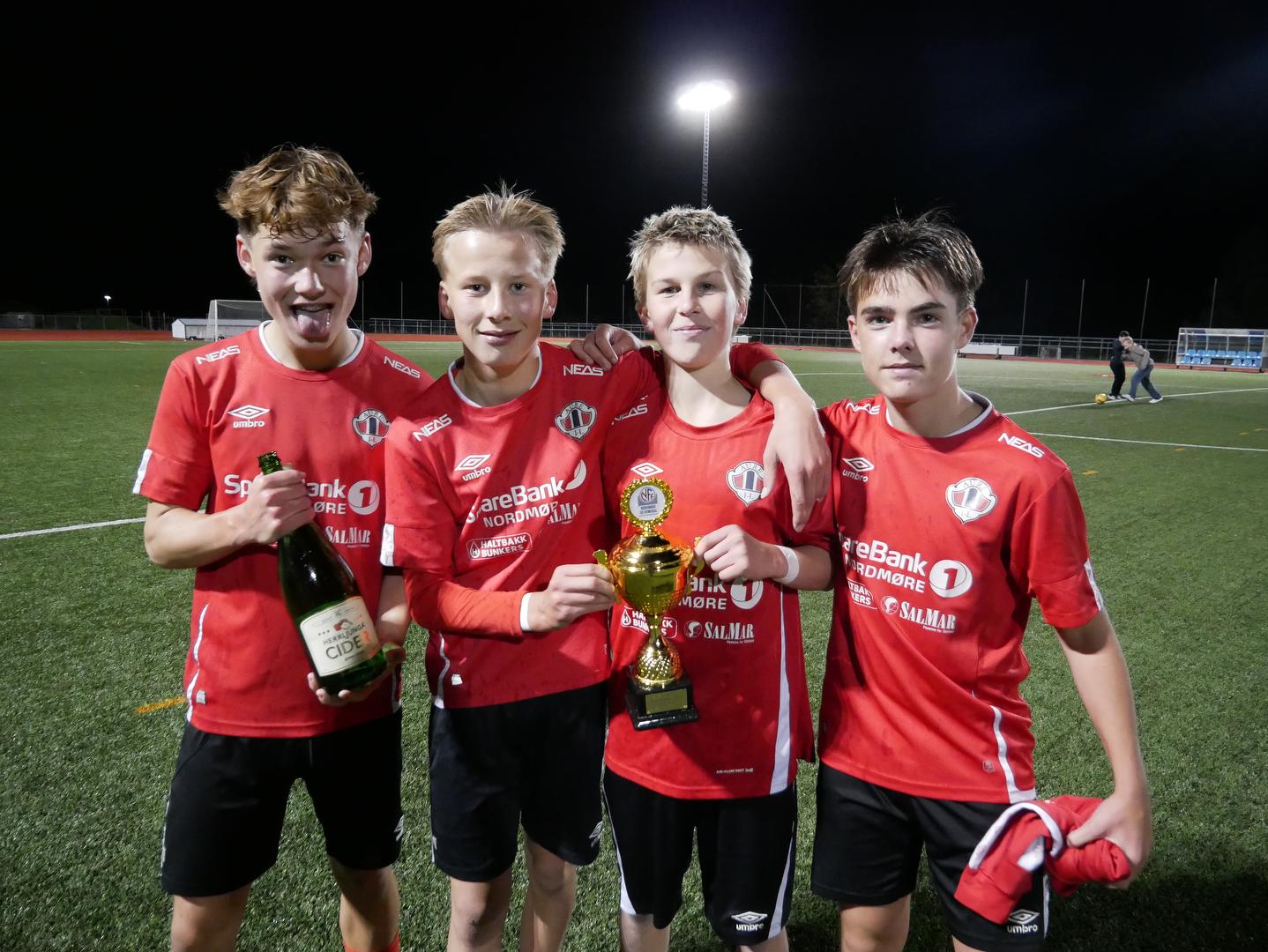 Det blir klemmer, hoing, hopping, eplebrus, fotominner og pokaloverrekkelse. Vi gratulerer hver og en av guttene, trenerduoen Karl Mikael & Vegard som legger ned så mye innsats og engasjement for laget, lagleder Åshild og til alle som er glade i Aurefotballen. En imponerende prestasjon av gutter som har spilt sammen i mange år, dette kan både dere og vi i breddeklubben Aure være stolte av. Heia Aure!