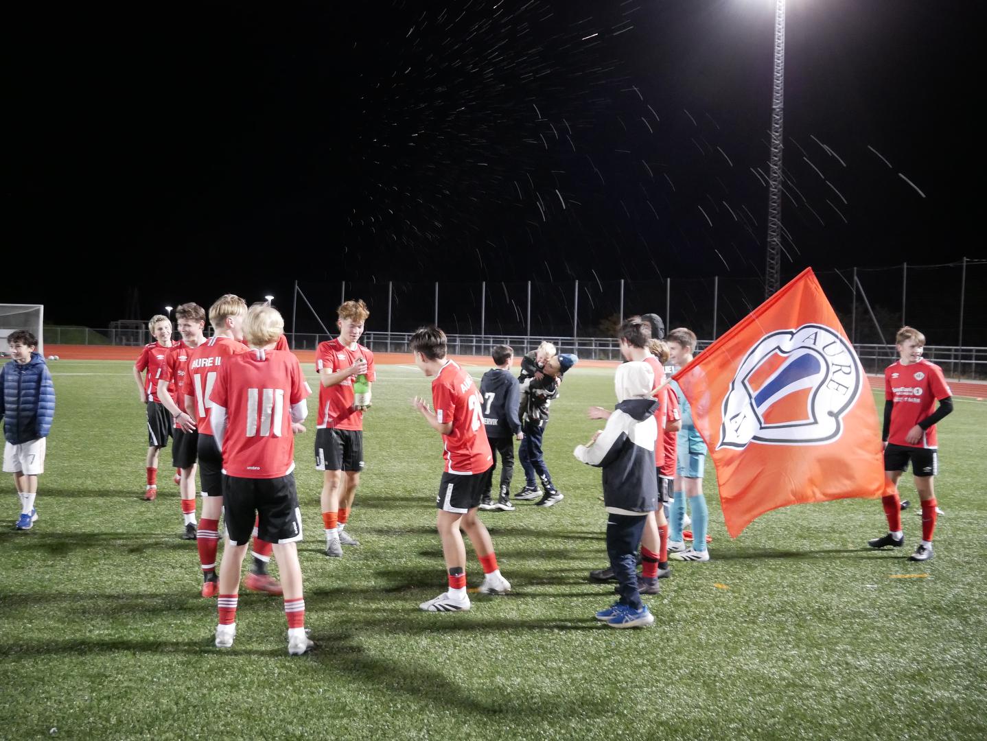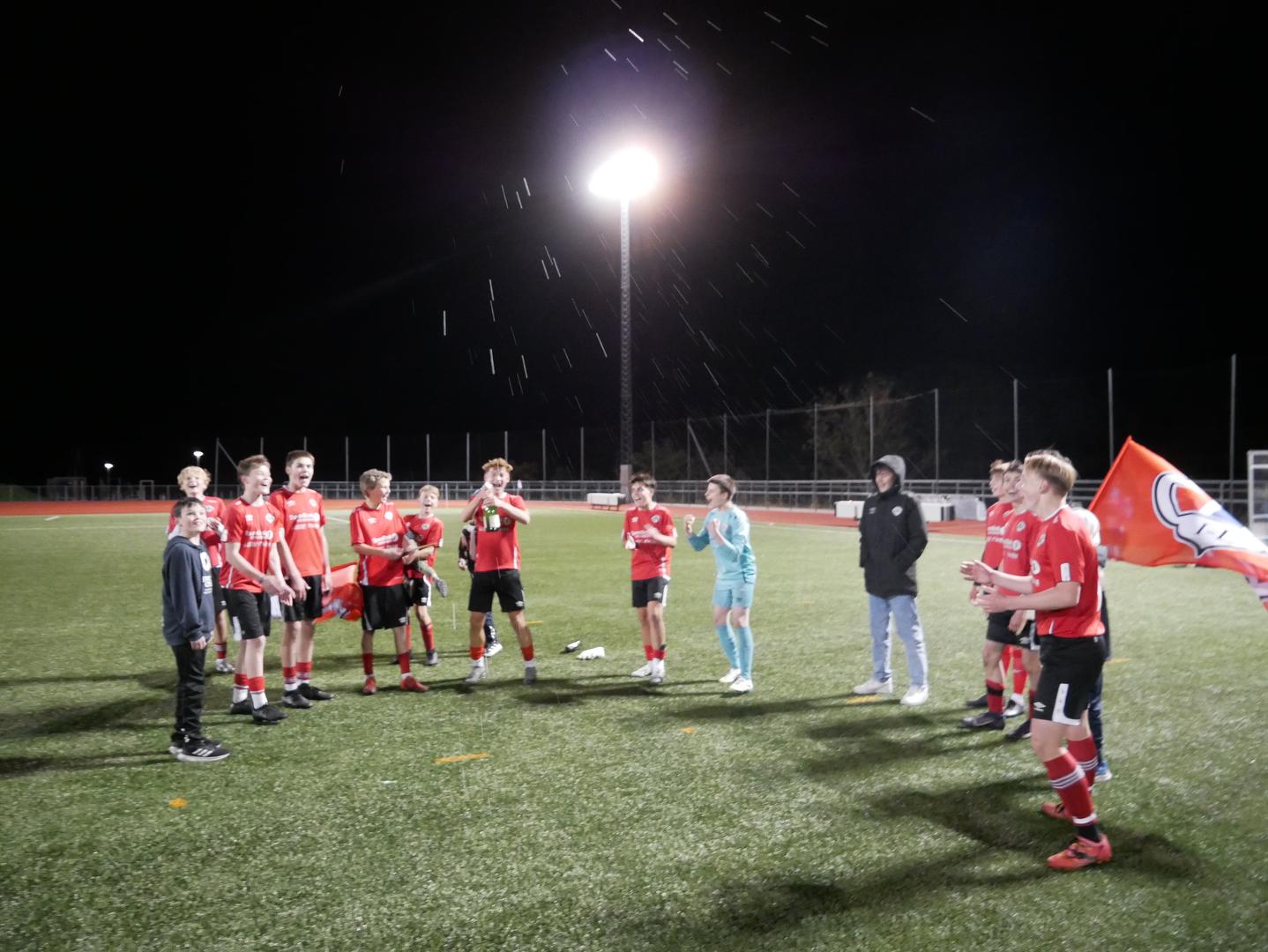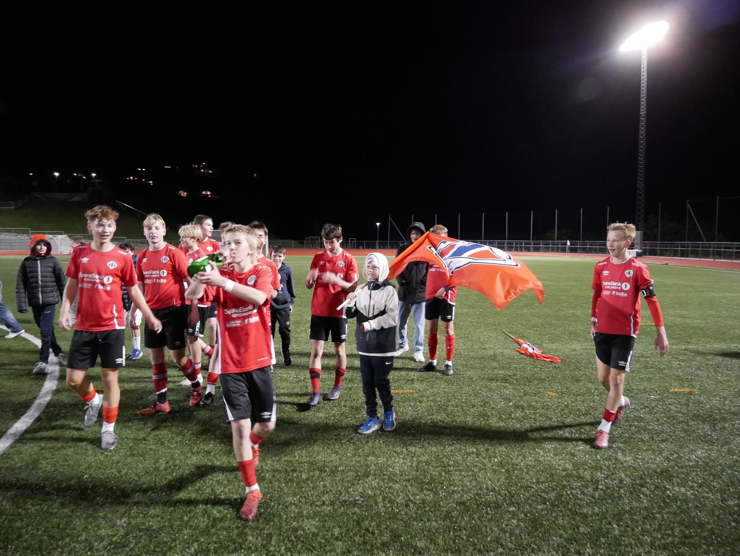 Det blir klemmer, hoing, hopping, eplebrus, fotominner og pokaloverrekkelse. Vi gratulerer hver og en av guttene, trenerduoen Karl Mikael & Vegard som legger ned så mye innsats og engasjement for laget, lagleder Åshild og til alle som er glade i Aurefotballen. En imponerende prestasjon av gutter som har spilt sammen i mange år, dette kan både dere og vi i breddeklubben Aure være stolte av. Heia Aure!