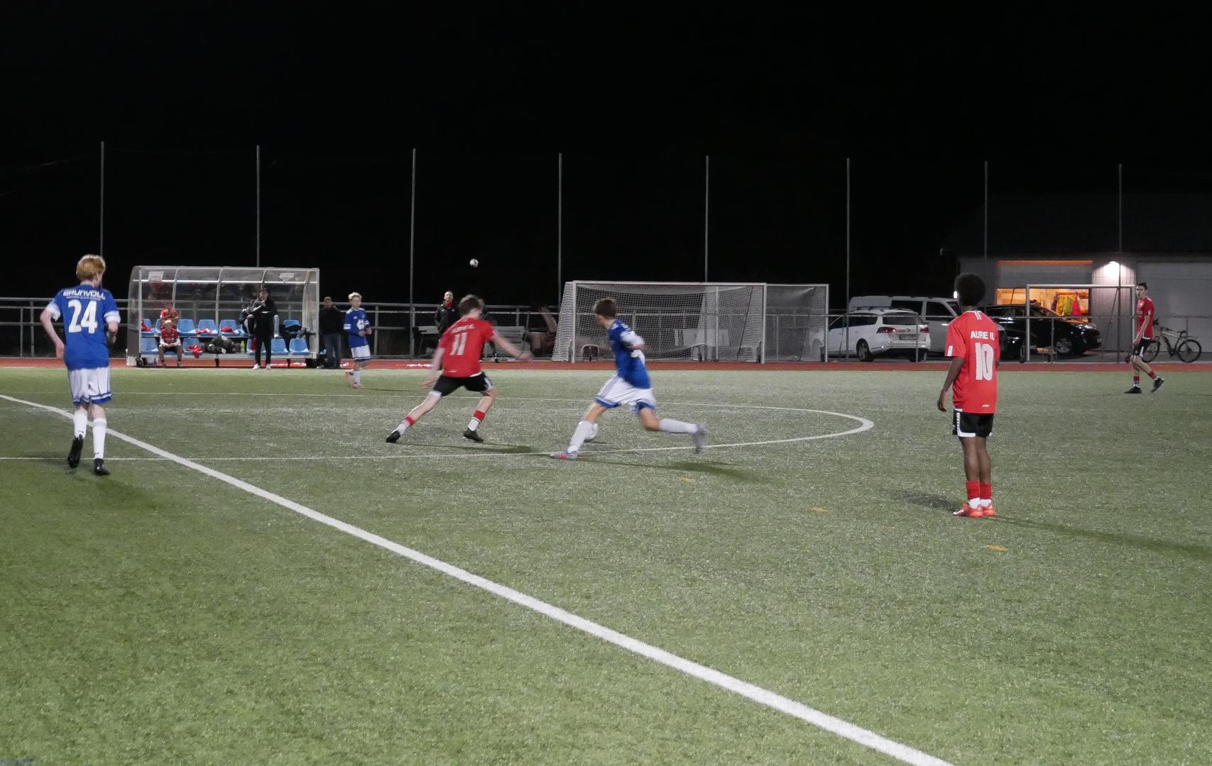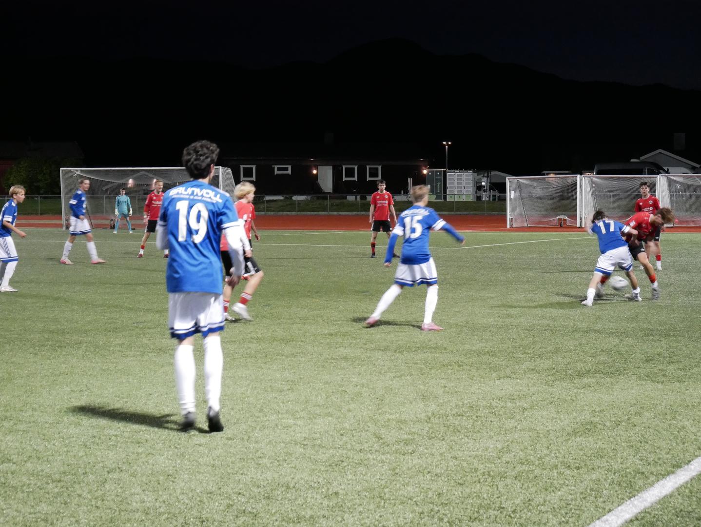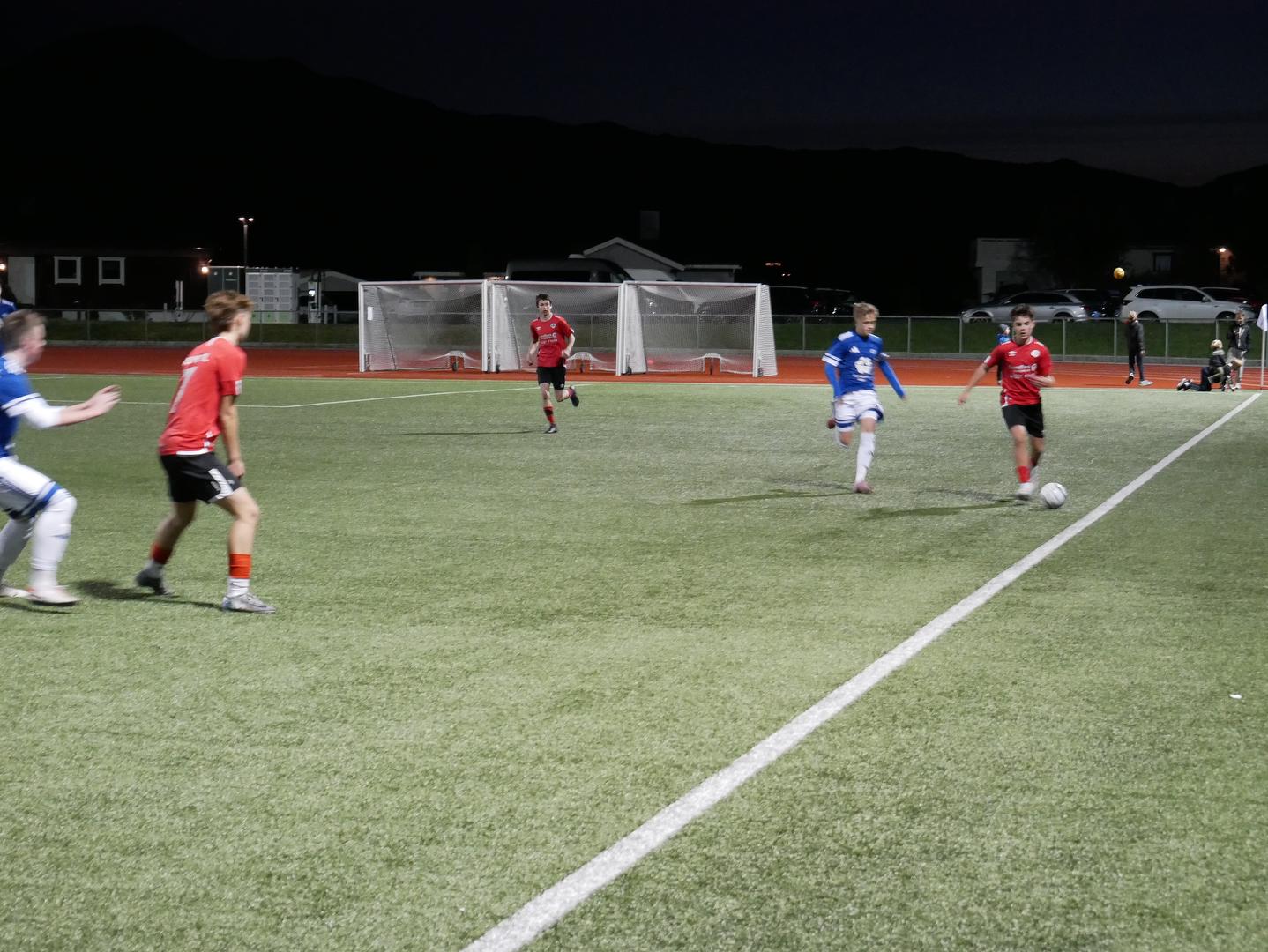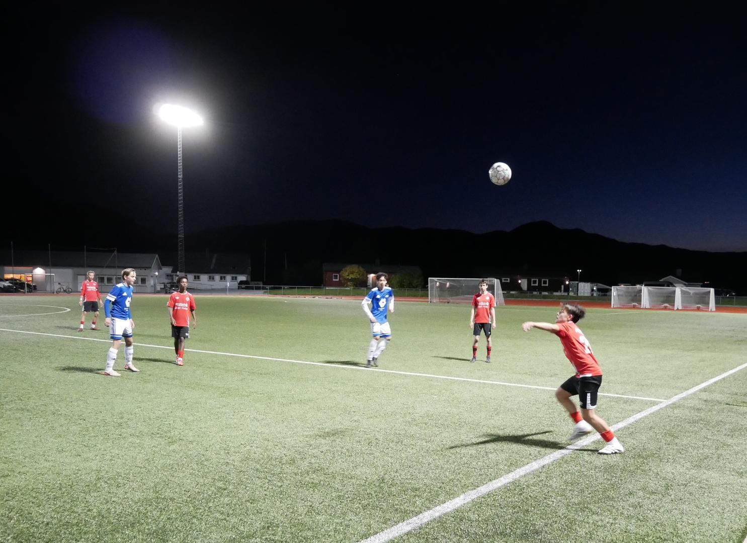 Våre gutter tar kommandoen fra start, og skaper flere halvsjanser før Sondre utnytter at Moldeforsvaret står høyt, løper alene gjennom mot keeper og setter den utagbart opp i venstre vinkel. Kampuret viser 13 minutter, men allerede minuttet etter er moldenserne à jour. 1-1 står seg til pause, i en omgang som er relativt jevnspilt og sjansefattig.
