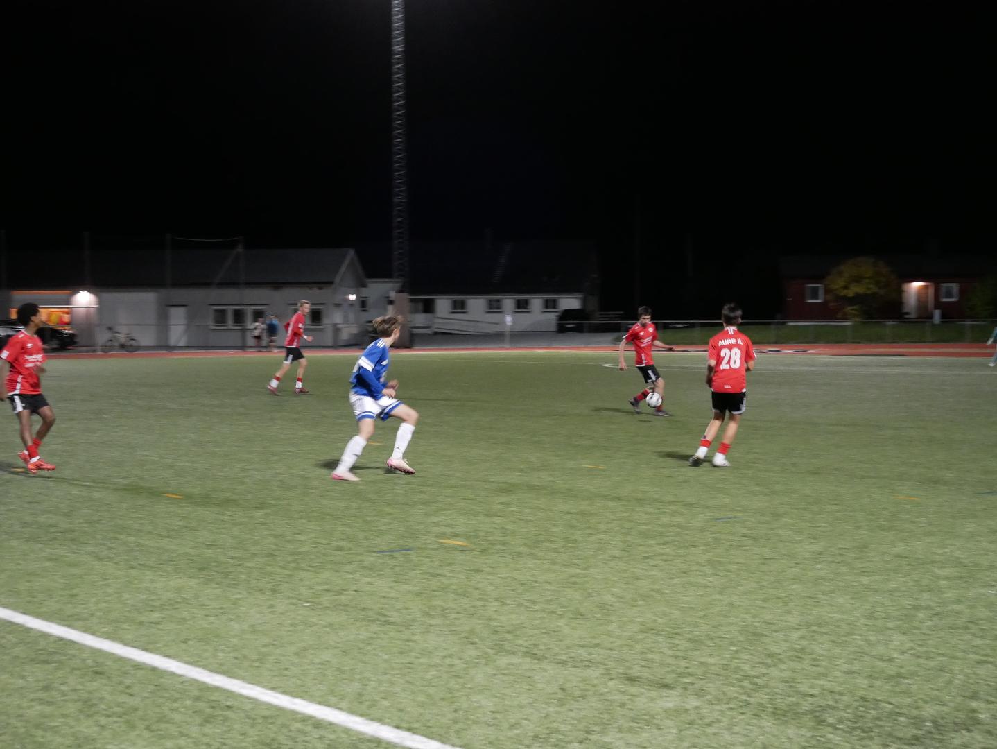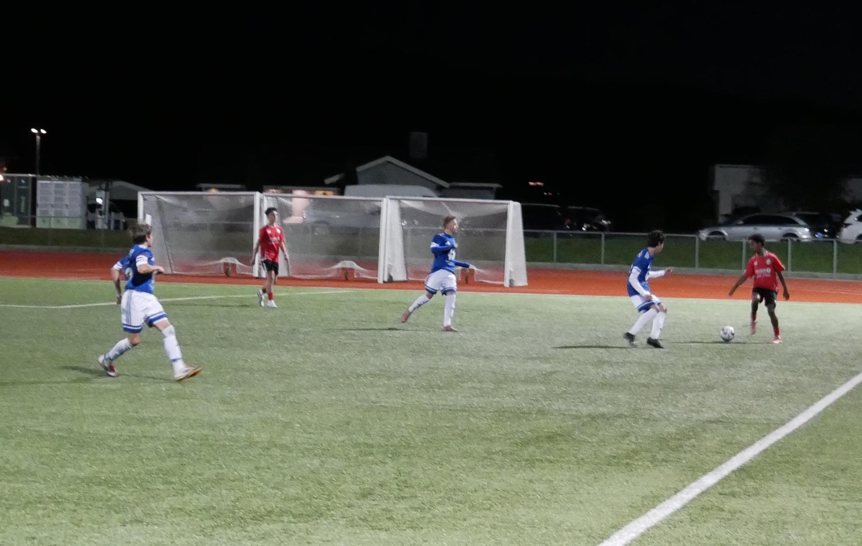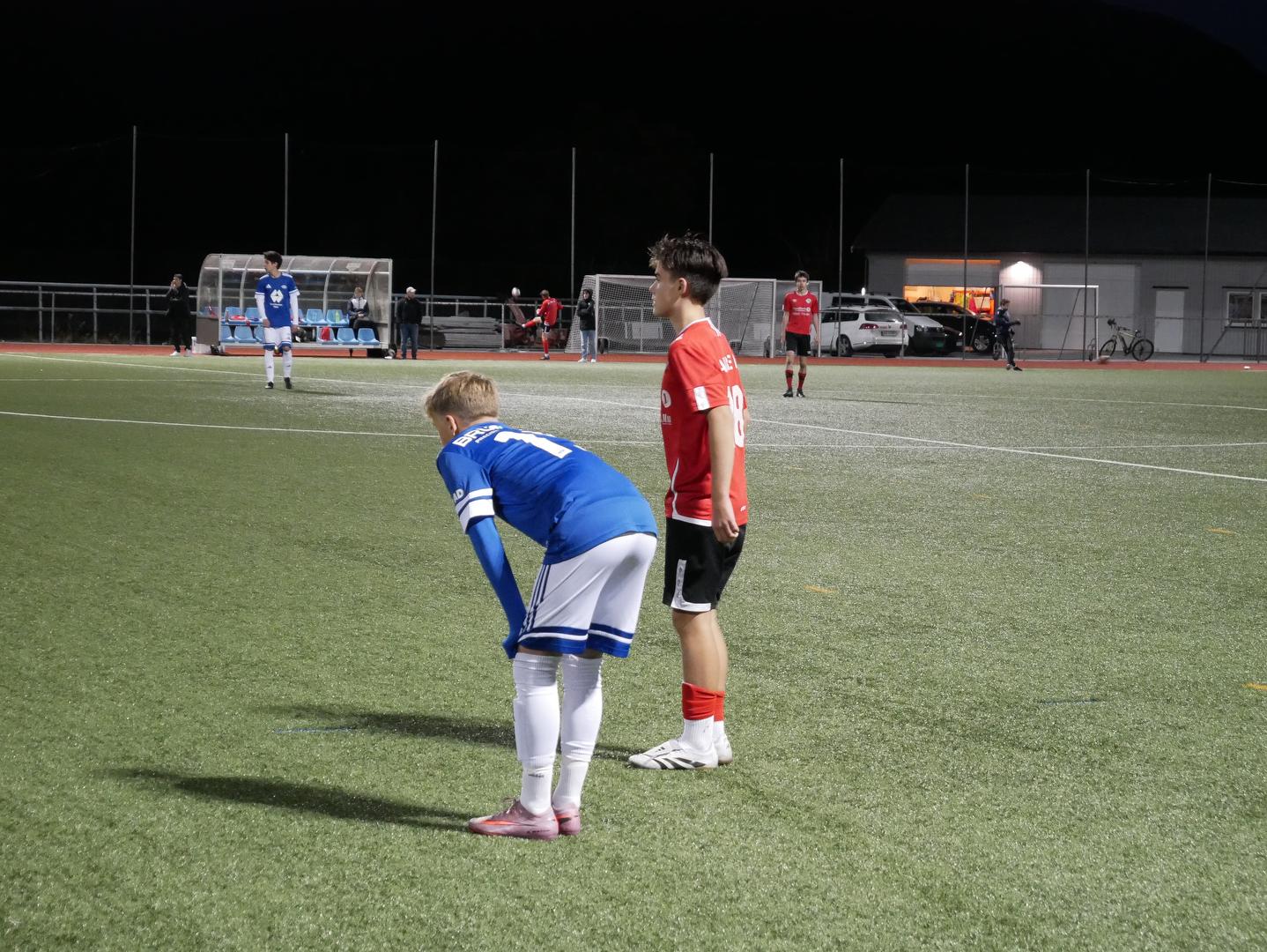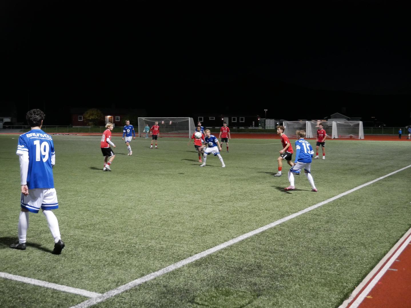 Våre gutter tar kommandoen fra start, og skaper flere halvsjanser før Sondre utnytter at Moldeforsvaret står høyt, løper alene gjennom mot keeper og setter den utagbart opp i venstre vinkel. Kampuret viser 13 minutter, men allerede minuttet etter er moldenserne à jour. 1-1 står seg til pause, i en omgang som er relativt jevnspilt og sjansefattig.