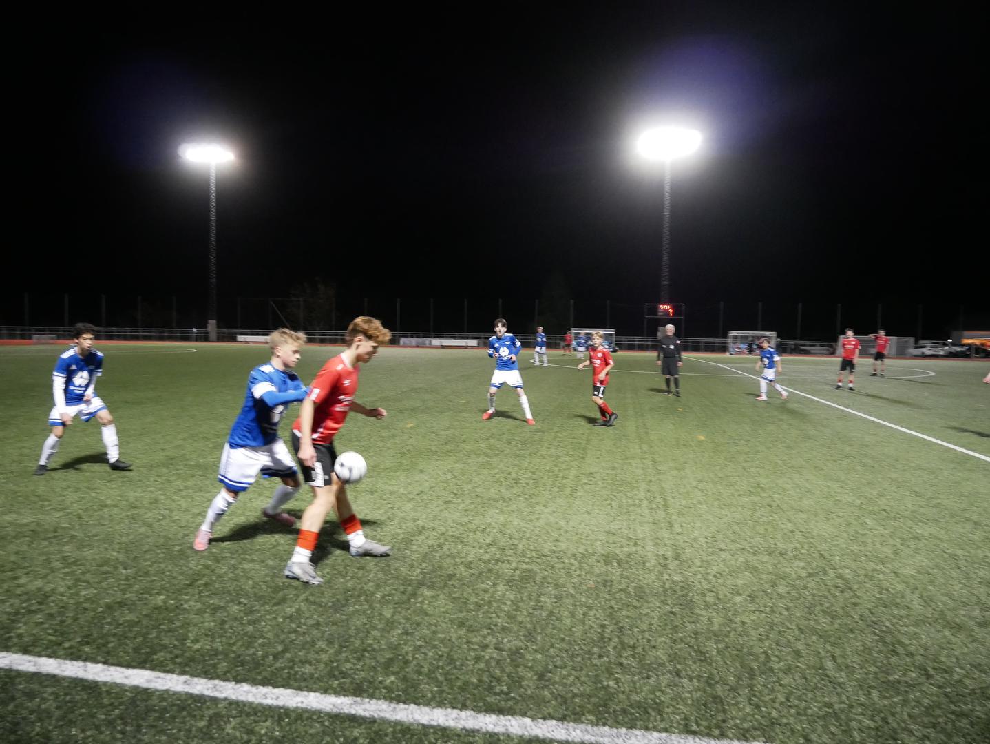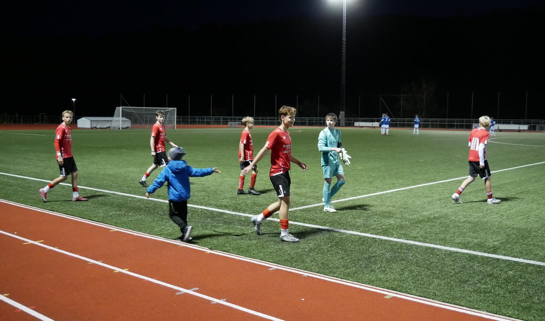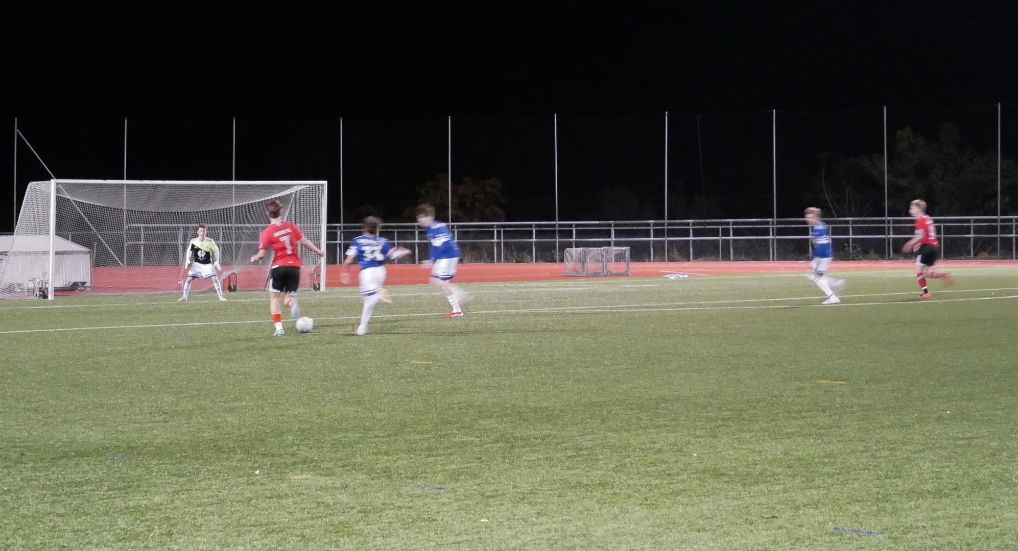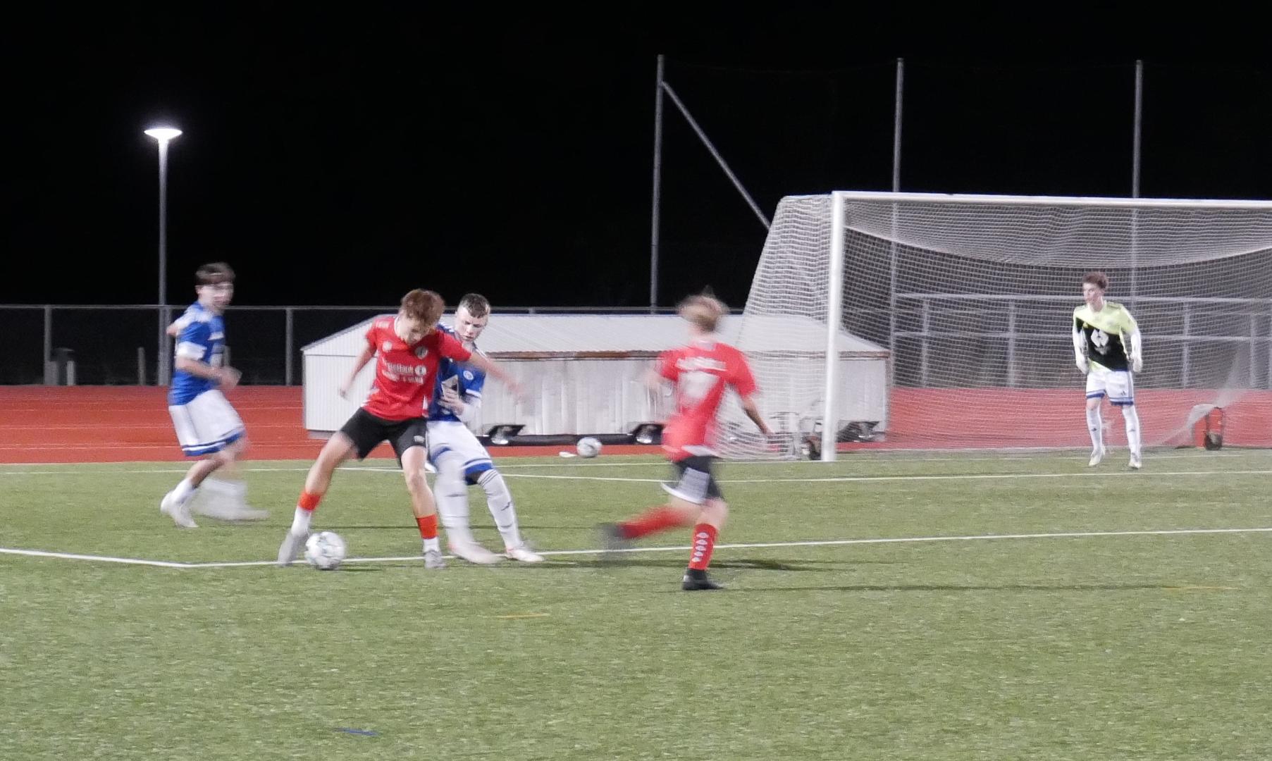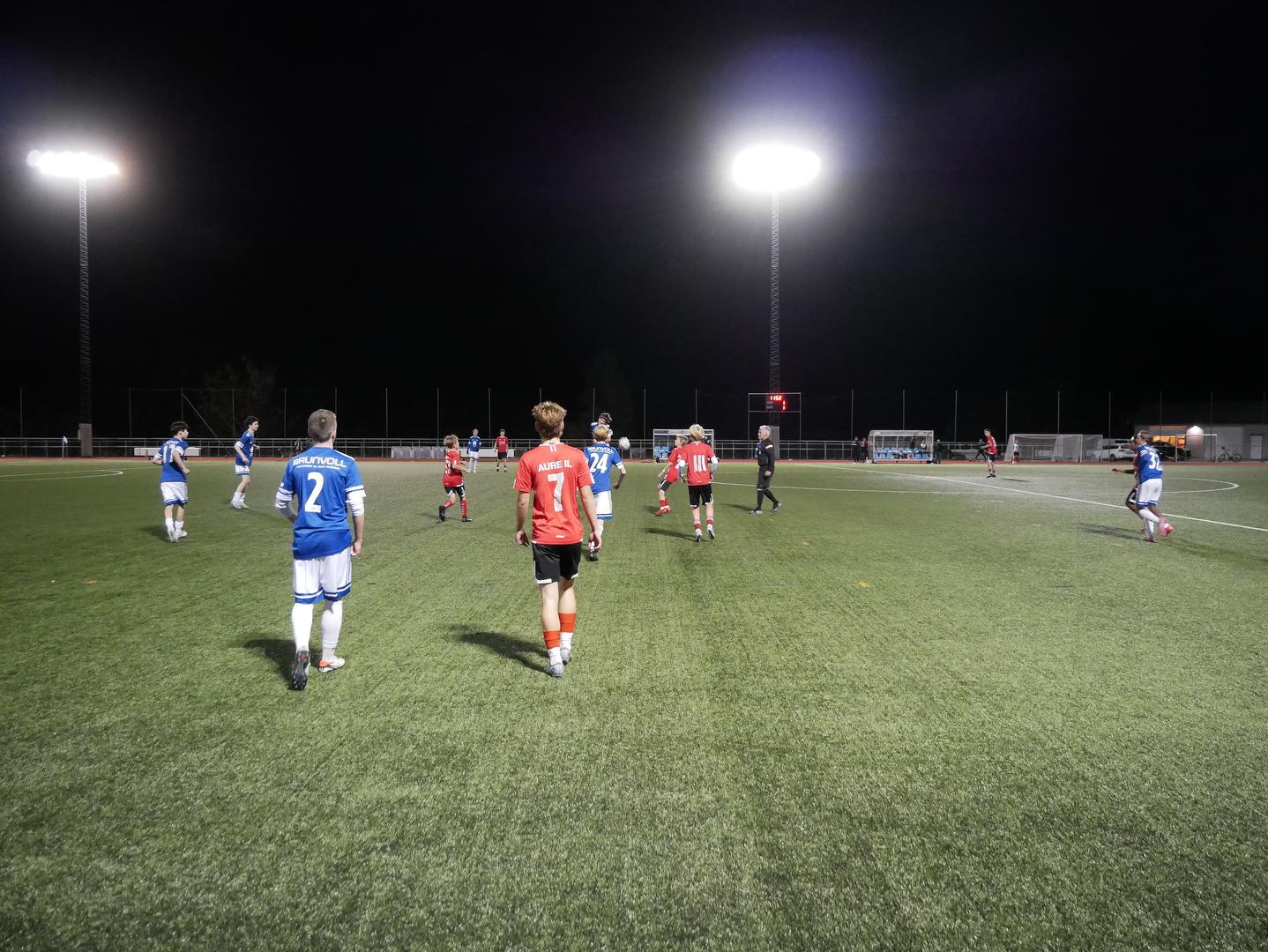 Våre gutter tar kommandoen fra start, og skaper flere halvsjanser før Sondre utnytter at Moldeforsvaret står høyt, løper alene gjennom mot keeper og setter den utagbart opp i venstre vinkel. Kampuret viser 13 minutter, men allerede minuttet etter er moldenserne à jour. 1-1 står seg til pause, i en omgang som er relativt jevnspilt og sjansefattig.