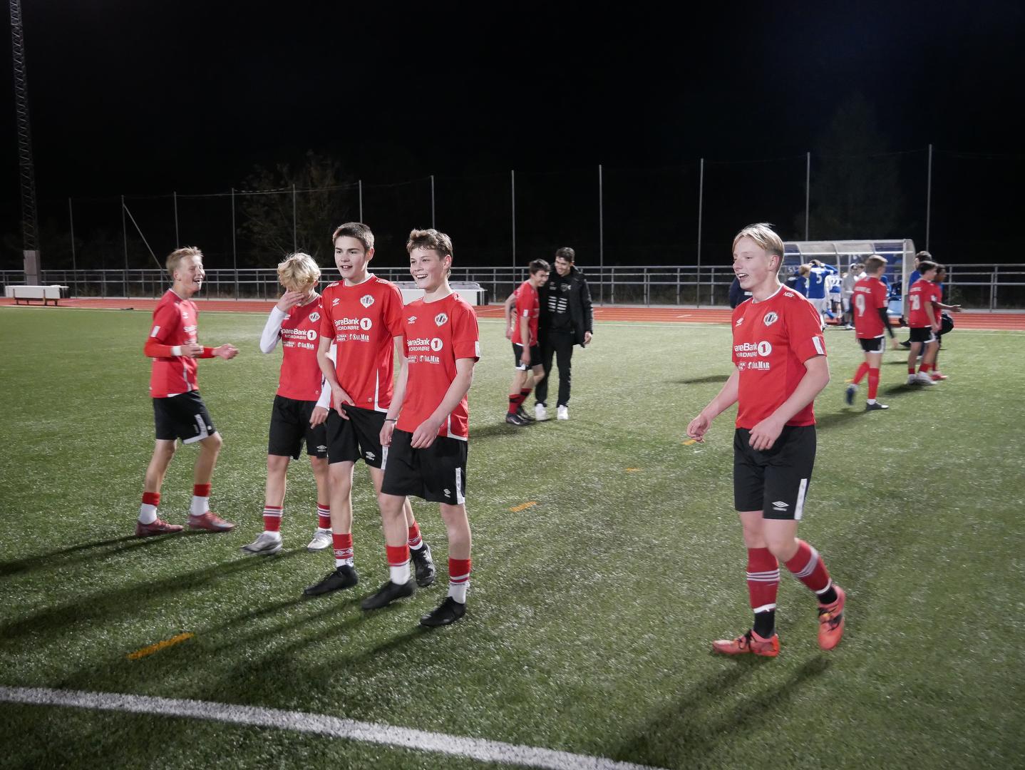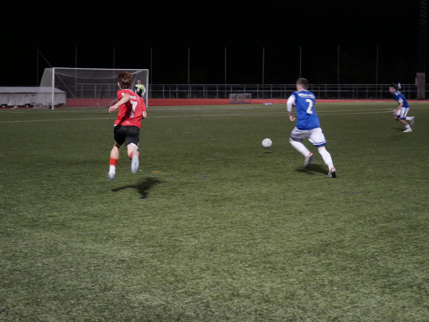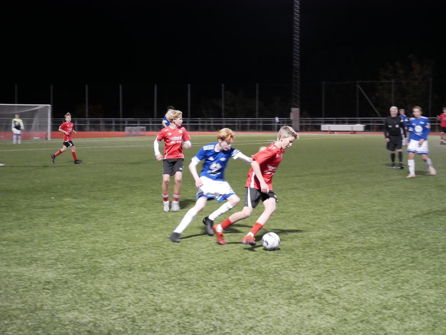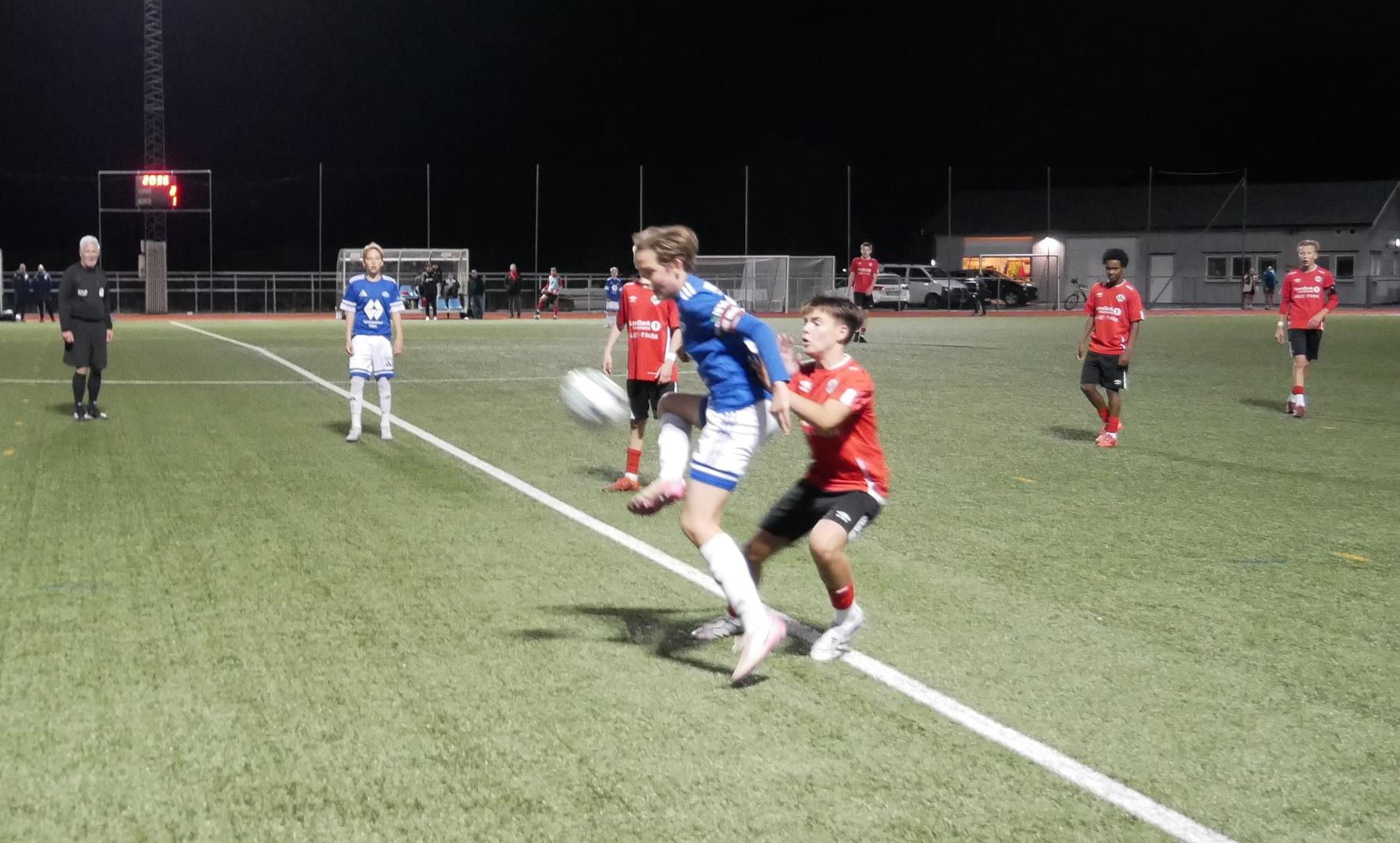 Våre gutter tar kommandoen fra start, og skaper flere halvsjanser før Sondre utnytter at Moldeforsvaret står høyt, løper alene gjennom mot keeper og setter den utagbart opp i venstre vinkel. Kampuret viser 13 minutter, men allerede minuttet etter er moldenserne à jour. 1-1 står seg til pause, i en omgang som er relativt jevnspilt og sjansefattig.