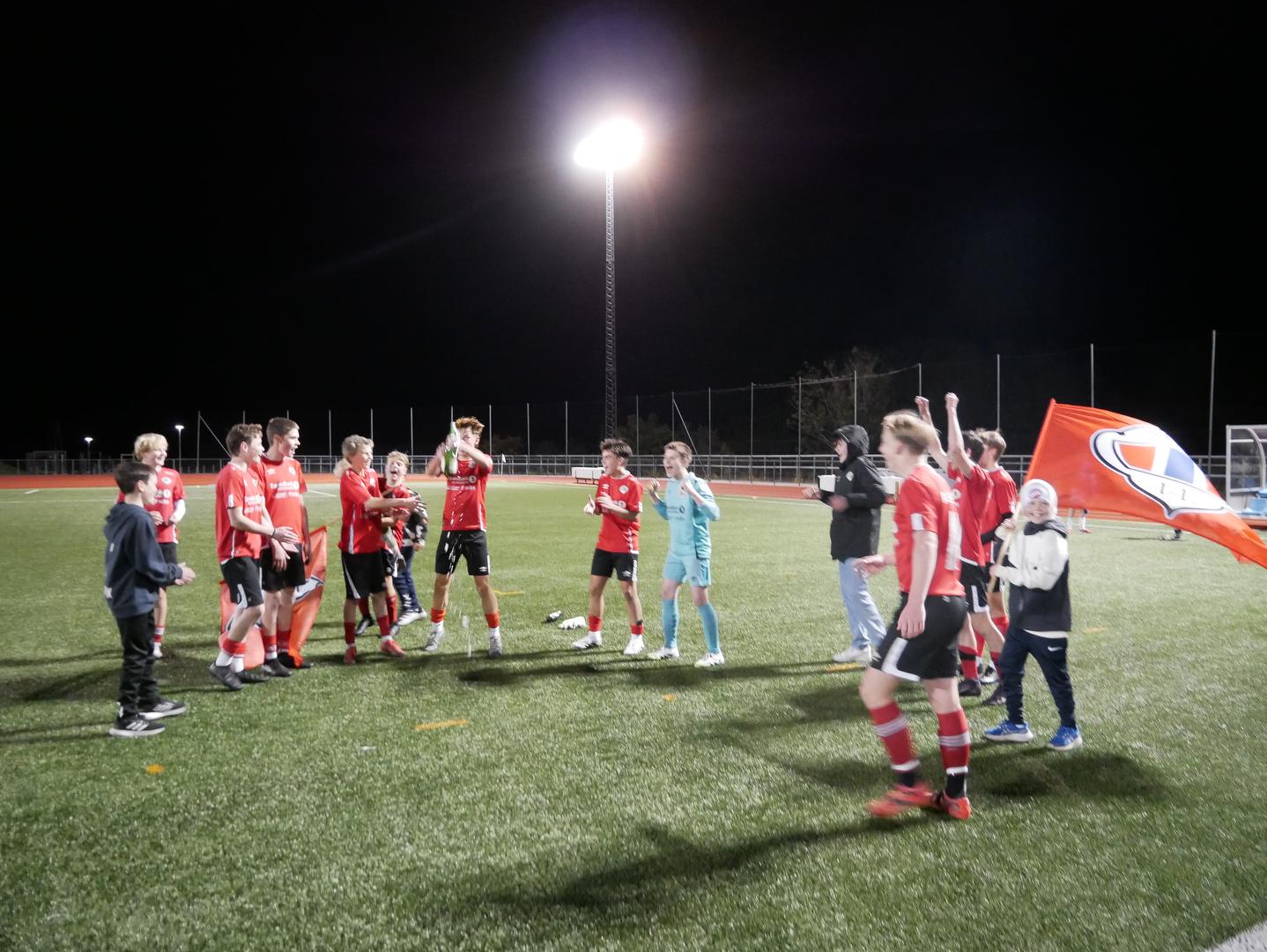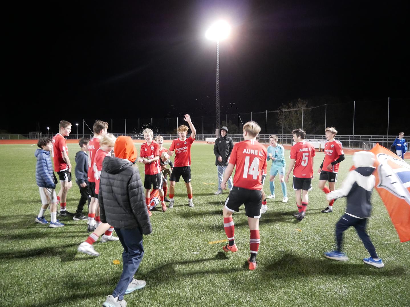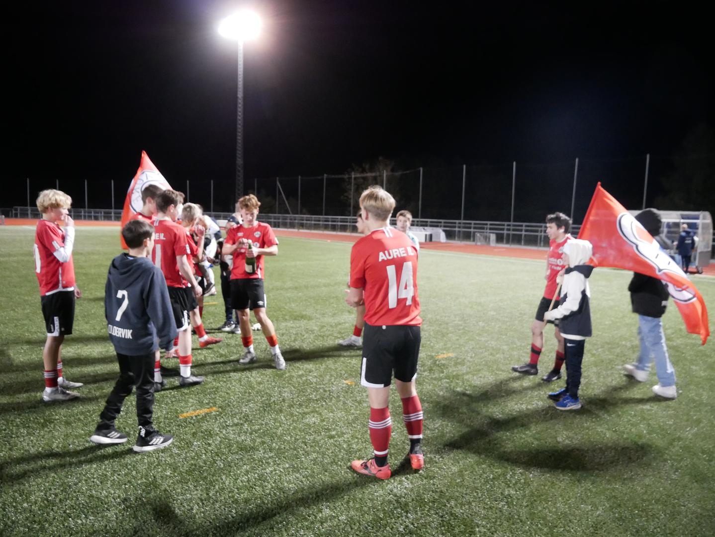 Det blir klemmer, hoing, hopping, eplebrus, fotominner og pokaloverrekkelse. Vi gratulerer hver og en av guttene, trenerduoen Karl Mikael & Vegard som legger ned så mye innsats og engasjement for laget, lagleder Åshild og til alle som er glade i Aurefotballen. En imponerende prestasjon av gutter som har spilt sammen i mange år, dette kan både dere og vi i breddeklubben Aure være stolte av. Heia Aure!